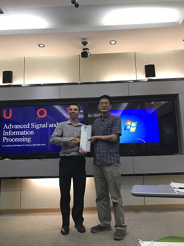 2017年6月20日,澳大利亚伍伦贡大学工程与信息科学学部副院长、信息处理领域专家克里斯汀·瑞兹(Christian Ritz)副教授应邀来我院开展课程讲座,为我院师生作了主题为《高级信号与信息处理:当今多媒体领域中的核心技术》的精彩报告。本次讲座由伍伦贡联合研究院院长余新国教授主持,在我校国家数字化学习工程技术研究中心301研讨室举行,联合研究院全体学生以及国家数字化学习工程技术研究中心硕士及博士生参加了讲座。