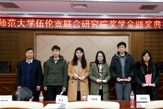 1月15日下午,华中师范大学伍伦贡联合研究院2017-2018学年奖学金颁奖典礼在逸夫国际会议中心报告厅举行,华中师范大学党委副书记覃红、伍伦贡联合研究院院长余新国以及党委宣传部、研究生院、财务处、国家数字化学习工程研究中心、国际合作与交流处等相关负责人以及伍伦贡联合研究院全体师生们共同出席典礼。典礼由伍伦贡联合研究院副院长吴和林主持。