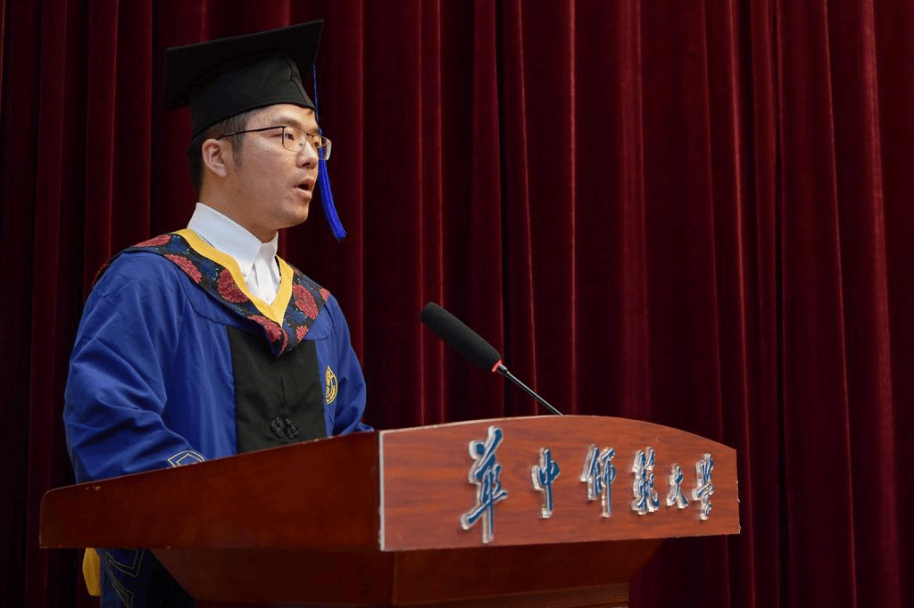 优秀毕业生代表陈思明在致谢中分享了两年求学经历中的收获与经验,勉励毕业生们用勤奋和努力攻克未来的难关,担负责任,迎接挑战。