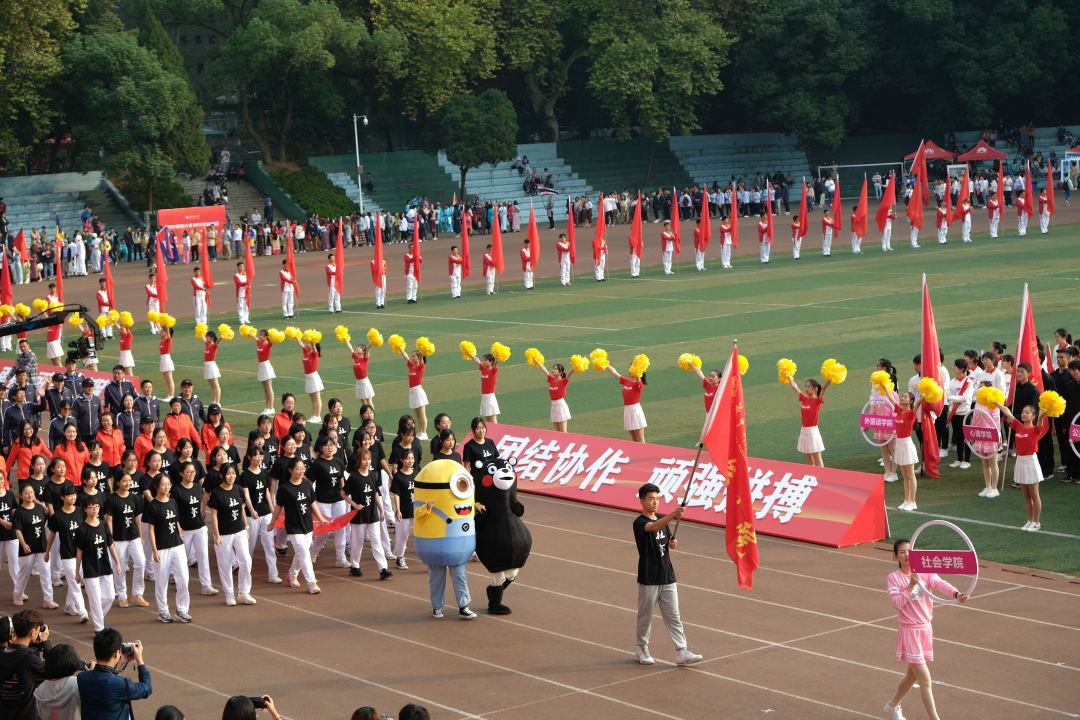 (熟悉的小黄人和熊本熊,带着全校最“社会”的社会学院方阵迎面走来)
