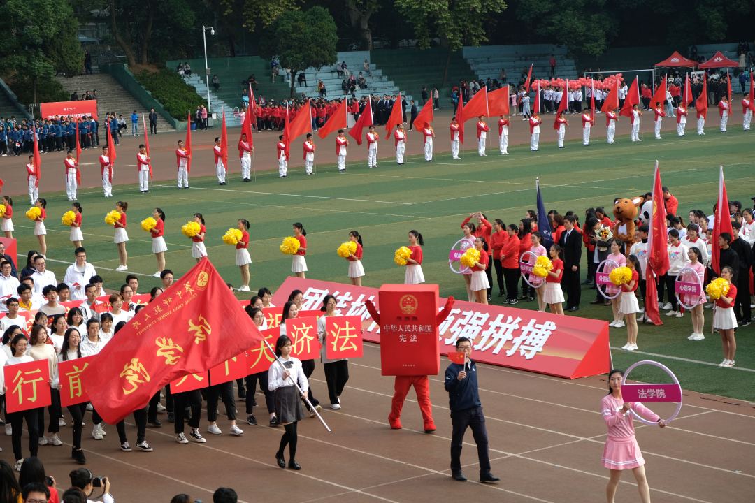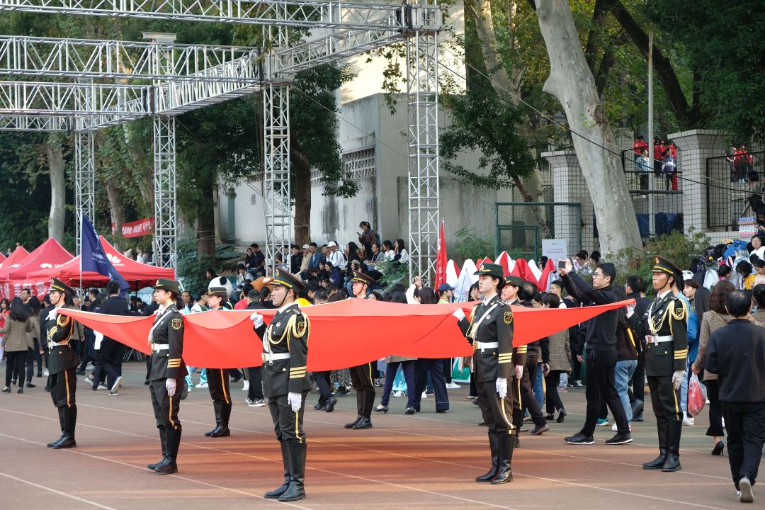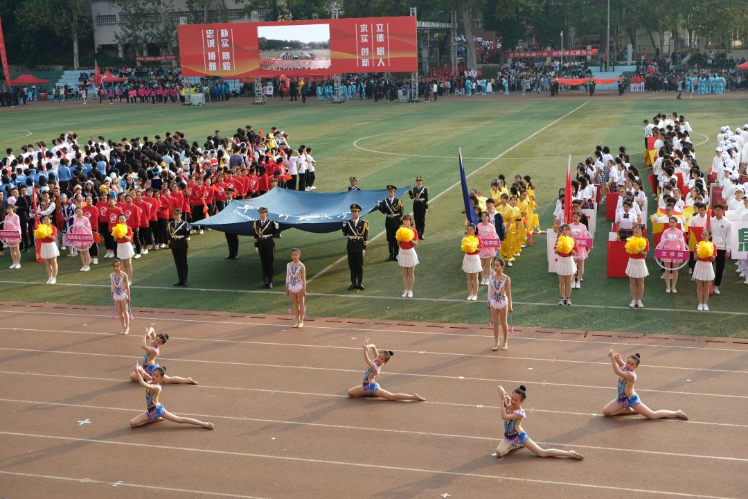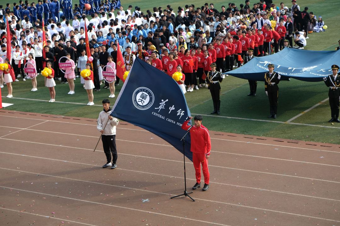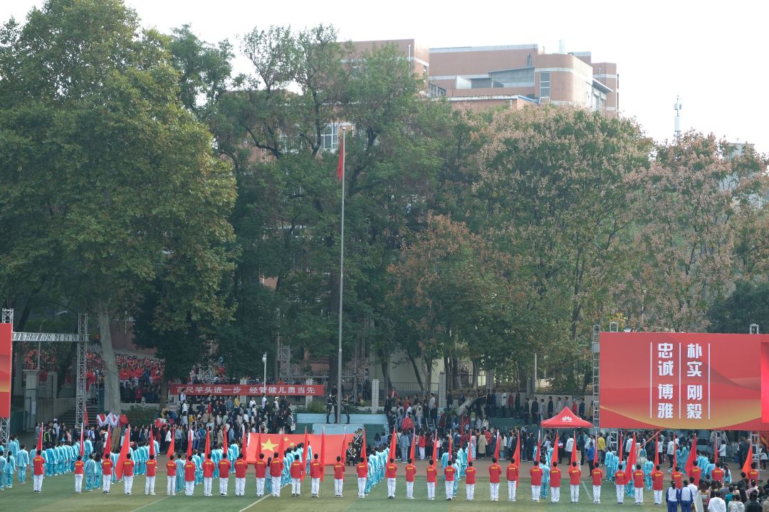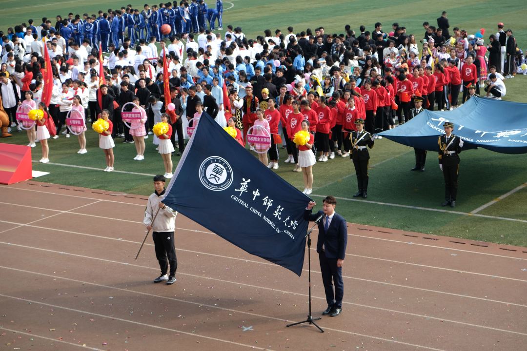在方阵游行结束之后,主持人宣布升旗仪式开始,并由副校长夏立新致开幕词。随后,运动员代表和裁判员代表分别在校旗下进行宣誓。