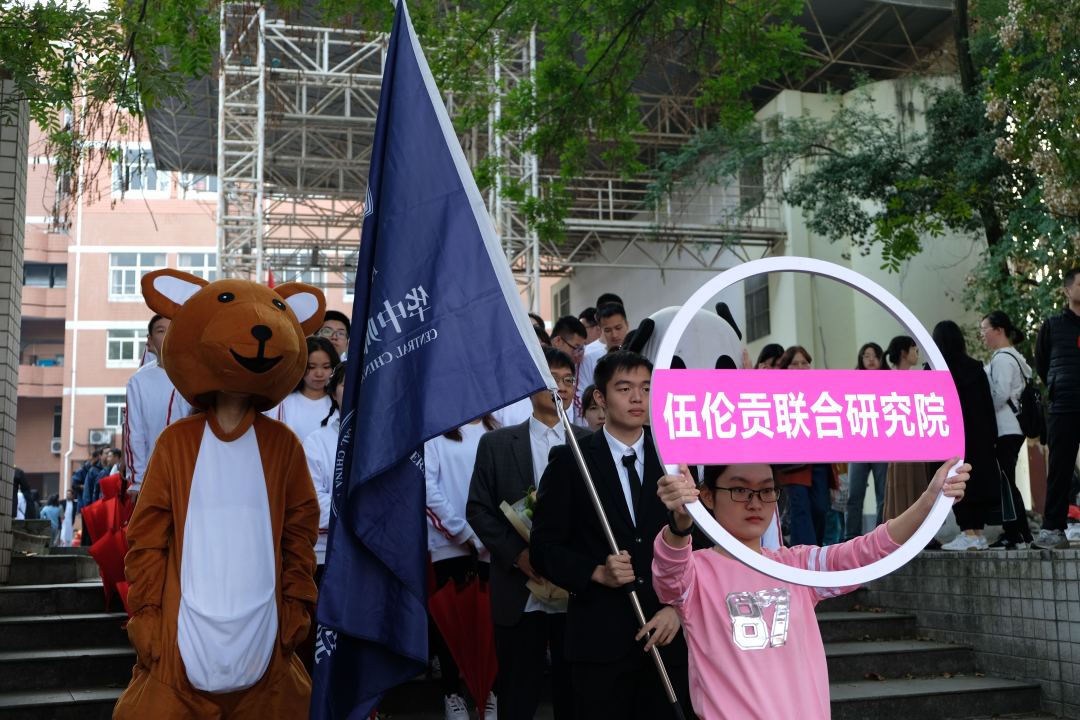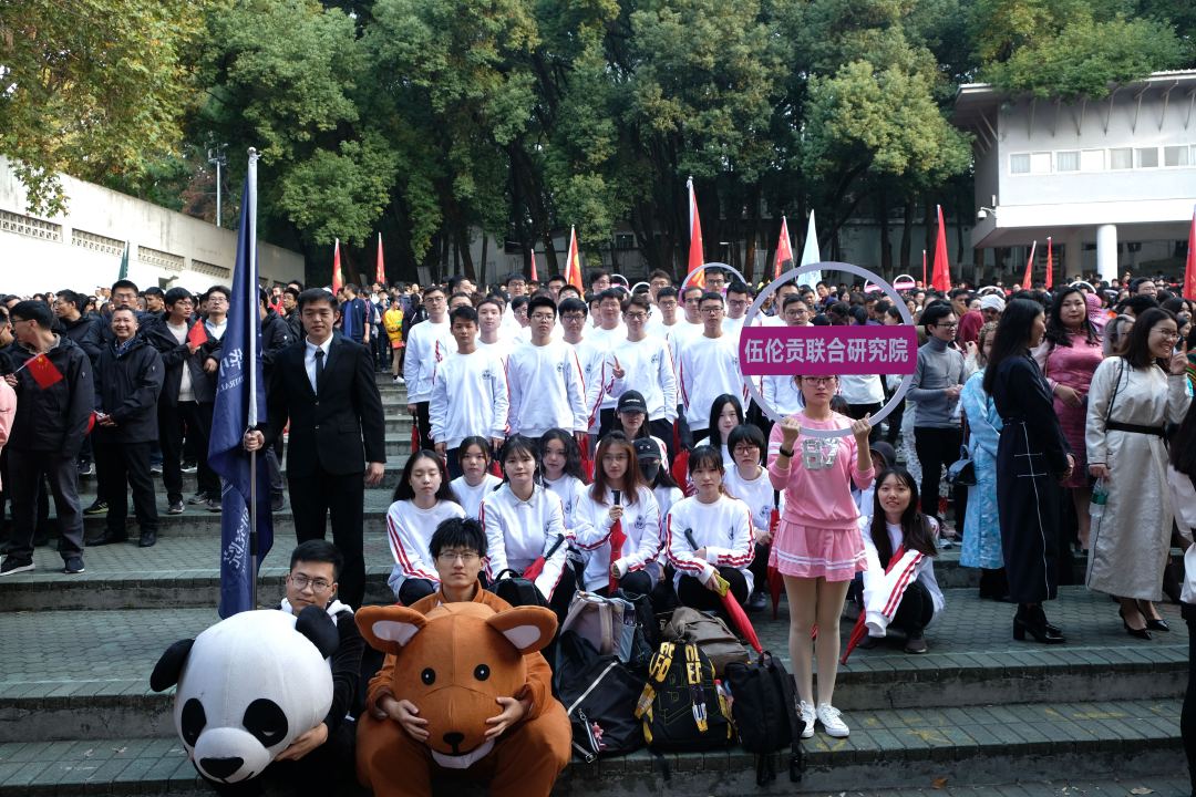 让我们看看,JI在哪里呢?熊猫,袋鼠,还有……余院长!不愧是JI,“白”与“红”的图景,赤诚热烈;步伐整齐,口号一致;JI学子,风华正茂!
