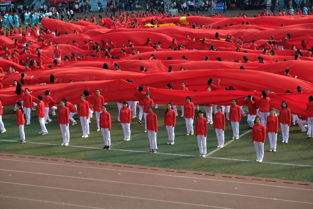 在华中师范大学校长赵凌云宣布2019年运动会正式开始之后,本届运动会便拉开了帷幕,随后操场上开始了精彩的文艺表演。