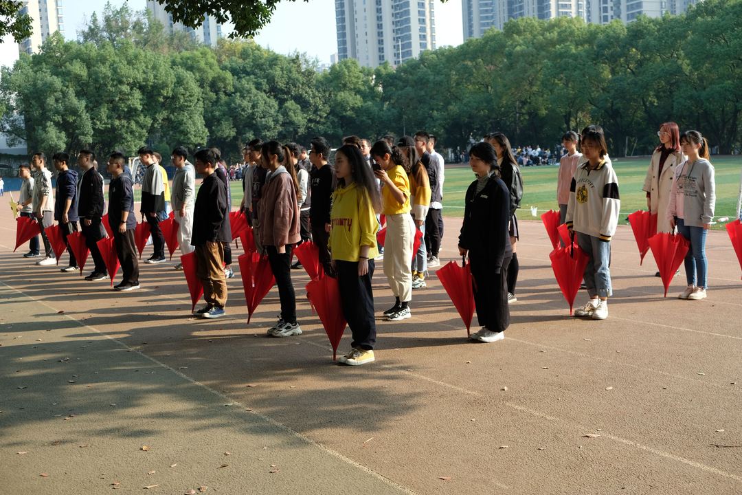 为了这短短的几分钟,JI的同学们其实已经训练了很长时间。十月底的武汉,晴空万里,但冷风凛冽,同学们不畏寒冷,还是坚持按时前来排练。