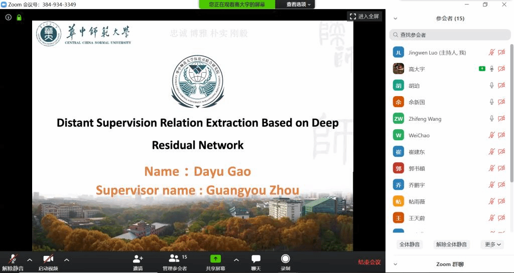 4月7日和8日,伍伦贡联合研究院举办了2020年疫情防控期间首批“空中论文答辩”——伍伦贡大学课程论文答辩暨华中师范大学学位论文预答辩。