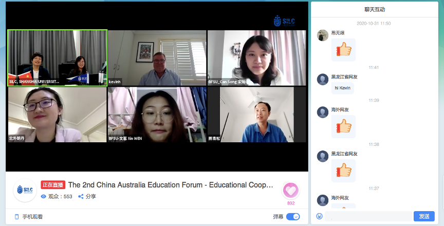 10月31日至11月1日,由上海大学悉尼工商学院、上海大学澳大利亚研究中心及在华澳大利亚研究基金会(FASIC)共同主办的第二届中澳教育论坛于云端举行,并进行网络直播。