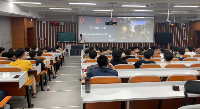 典礼伊始,余新国院长首先对2021级新生的到来表示热烈欢迎,并向伍伦贡大学学院及授课教师一直以来的支持表示感谢。他表示,英语能力不仅是同学们在联合研究院学习的必备条件,也将成为毕业生就业的一大优势。他希望同学们通过英语语言课程的学习,在英语能力和自主学习能力上都能有显著的提高。