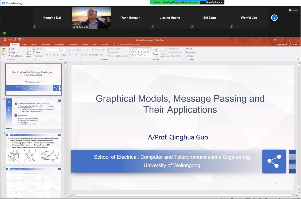 7月19日和20日下午,人工智能教育学部伍伦贡联合研究院先后举办了两场主题为“稀疏贝叶斯学习和无授权NOMA接收器设计的图形模型和消息传递”的学术讲座。讲座由来自伍伦贡大学的郭清华(Qinghua Guo)副教授主讲,伍伦贡联合研究院教师北康漾(Dr. Yann Berquin )博士主持。