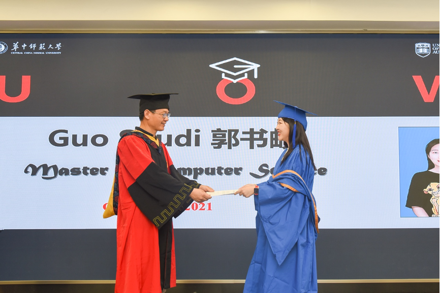 随后,余新国教授宣读了2020届和2021届伍伦贡大学和华中师范大学优秀毕业生,罗丽华书记为受表彰学生颁发荣誉证书。