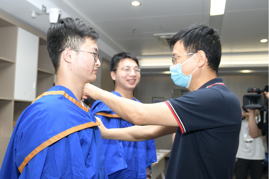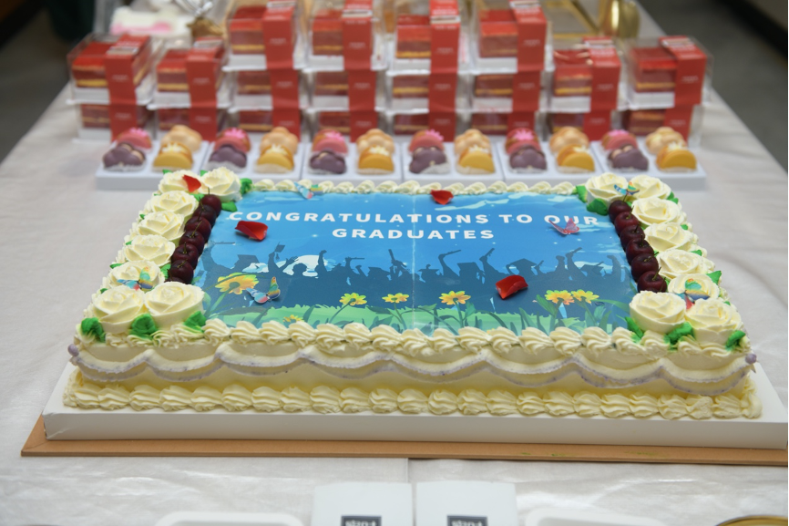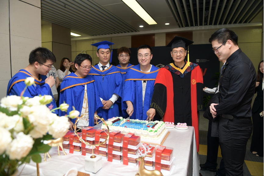 为庆祝两届毕业生们顺利毕业,联合研究院精心为学生们准备了毕业礼品,并定制了专属毕业蛋糕,共同见证美好时刻。典礼开始前,学生们依次领取礼品,穿戴好学位服后签到入席。