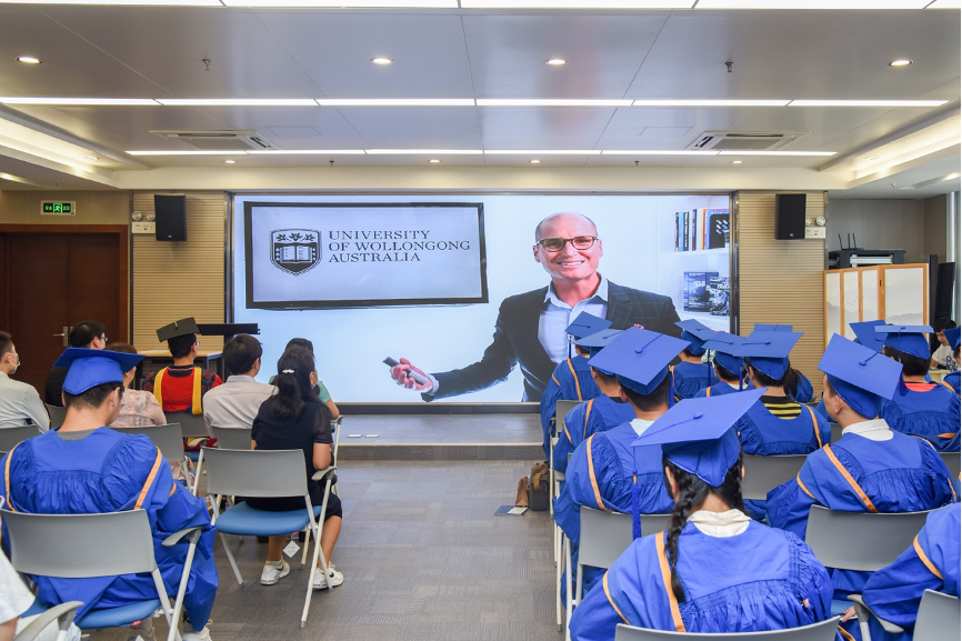 伍伦贡大学2002届校友、畅销书作家、评论员Mr Michael McQueen通过视频形式祝贺毕业生们圆满完成学业,他讲述了如何在快速发展的世界中把握自己,快速成长,为毕业生们带来了生动的最后一课。