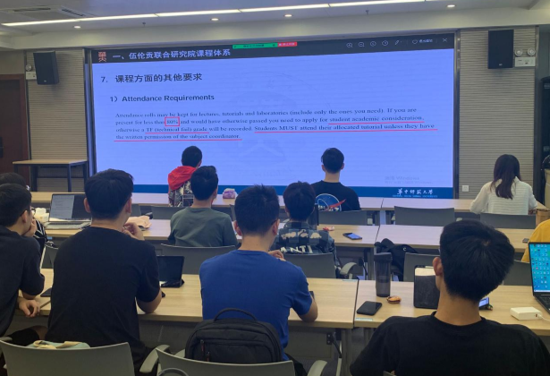 9月6日上午,澳方相关负责人通过Zoom对新生进行了一场远程讲座。澳方负责人Christian Ritz教授等人向新生们介绍了新生注册和选课的相关流程,展示了各学期的课程设置以及学习网站Moodle的使用方法,帮助2021级新生更加深入地了解和掌握联合研究院相关规章制度。澳方老师向新生们介绍了伍伦贡城市风貌和伍伦贡大学简况,并欢迎同学们前往伍伦贡大学学习交流。