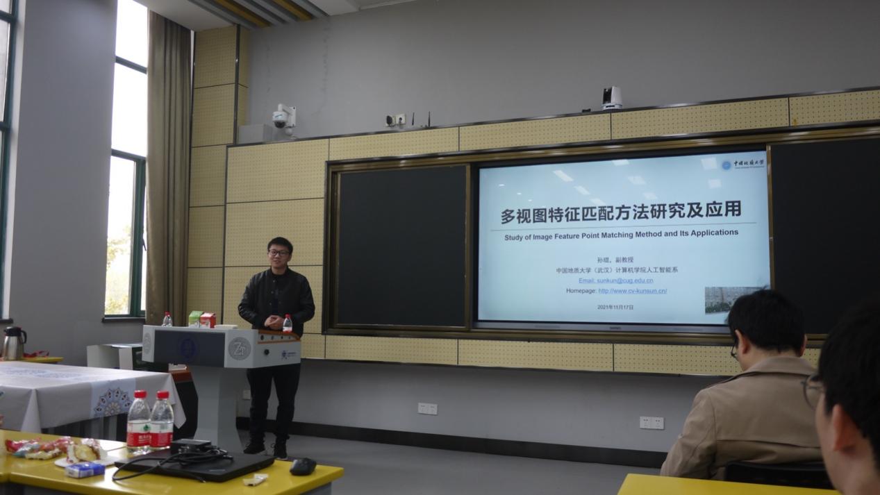 第二场技术分享由孙琨副教授主讲。孙老师专注于计算机视觉领域,本次分享为大家介绍了多视图特征匹配方法的相关研究与应用。