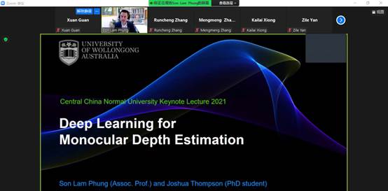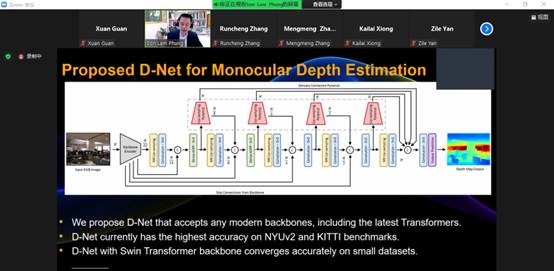第二场讲座中, Son Lam Phung教授详细介绍了一种可用于辅助和自主导航的单目深度估计的深度神经网络。Phung教授对单目深度估计的中D-Net算法进行了详细的分析。Lam教授不仅使同学们对语义分割和单目深度估计有了更加深刻的理解,更让同学们了解了科学研究的过程。