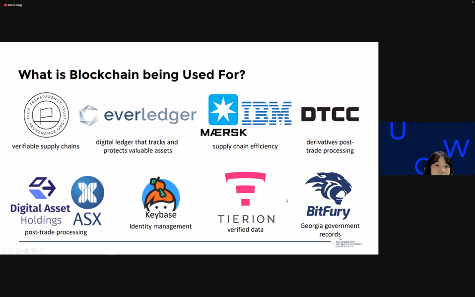 3月28号和3月31日,伍伦贡联合研究院举办了题为“区块链及其应用相关介绍”的系列学术讲座,讲座由伍伦贡大学讲师Yannan Li博士主讲,伍伦贡联合研究院副研究员牛磊老师主持。