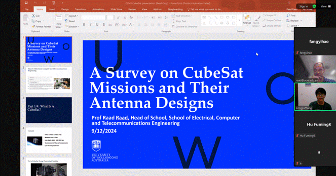 2024年12月9日下午,伍伦贡联合研究院开展了主题为“CubeSat任务及其天线设计综述”的系列讲座,讲座由伍伦贡大学电气、计算机与电信工程学院的Raad Raad教授主讲,伍伦贡联合研究院教师张隆吉副教授主持。