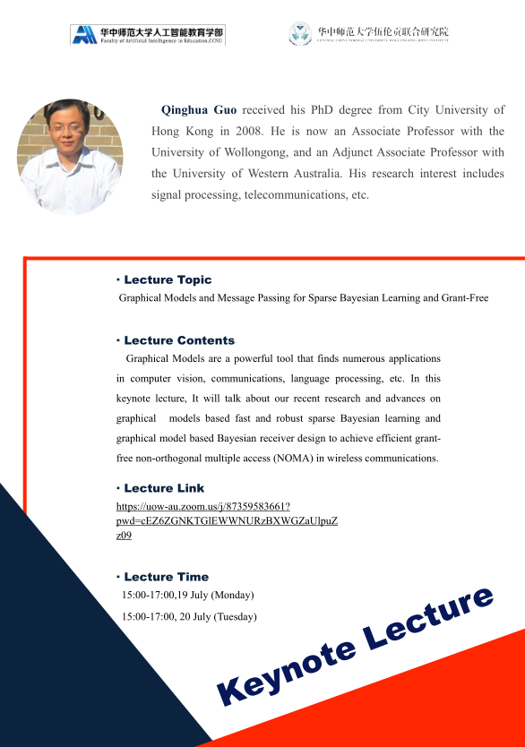 Qinghua Guo received his PhD degree from City University of Hong Kong in 2008. He is now an Associate Professor with the University of Wollongong, and an Adjunct Associate Professor with the University of Western Australia. His research interest includes signal processing, telecommunications, etc.