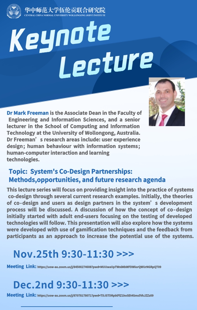 Dr Mark Freeman is the Associate Dean in the Faculty of Engineering and Information Sciences, and a senior lecturer in the School of Computing and Information Technology at the University of Wollongong, Australia. Dr Freeman’s research areas include: user experience design; human behaviour with information systems; human-computer interaction and learning technologies.