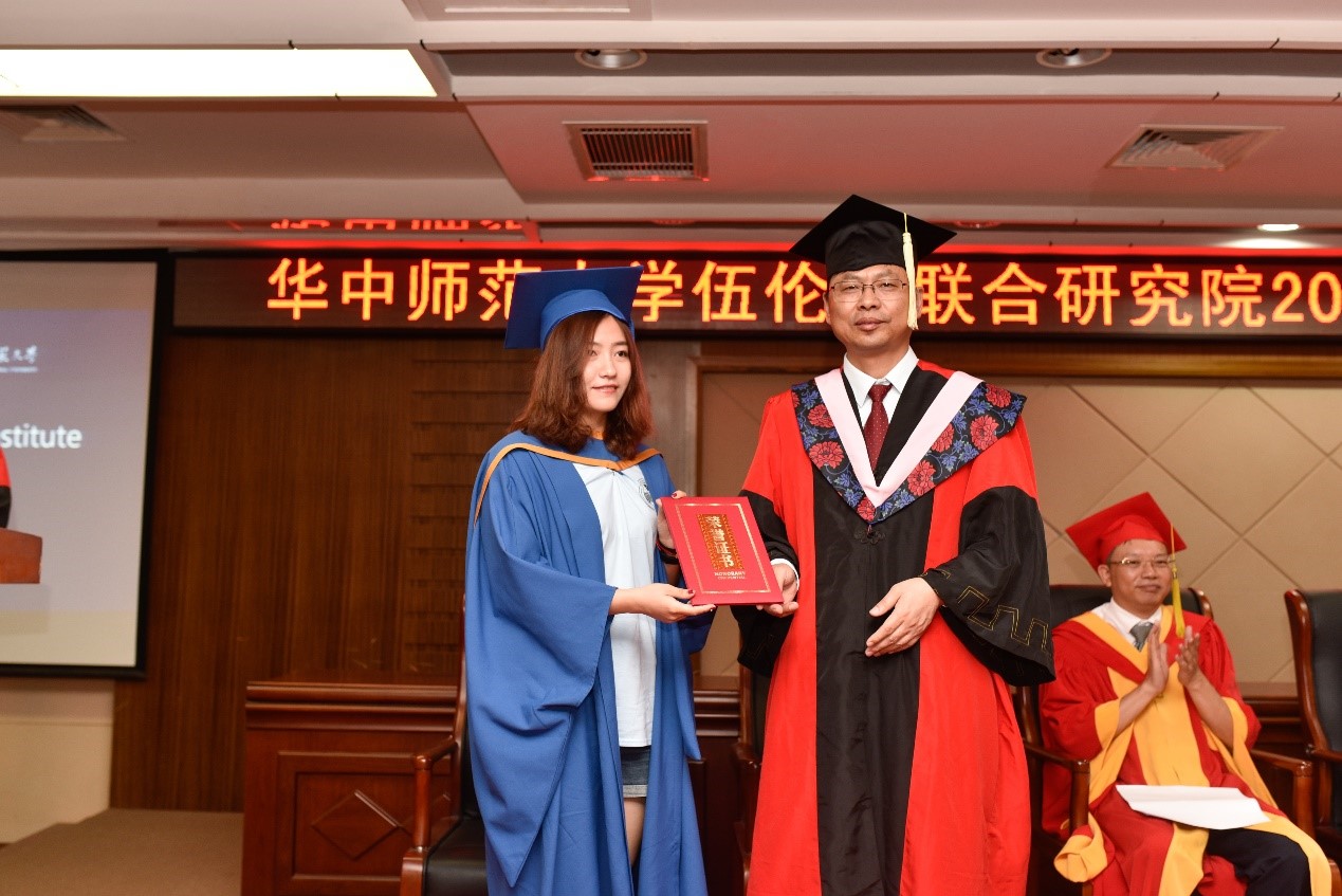 Professor Zongkui Zhou, Dean of the Graduate School of CCNU, awarded the Honorary Certificate for Outstanding Graduate of CCNU for the 2018 graduate Luoling Xu