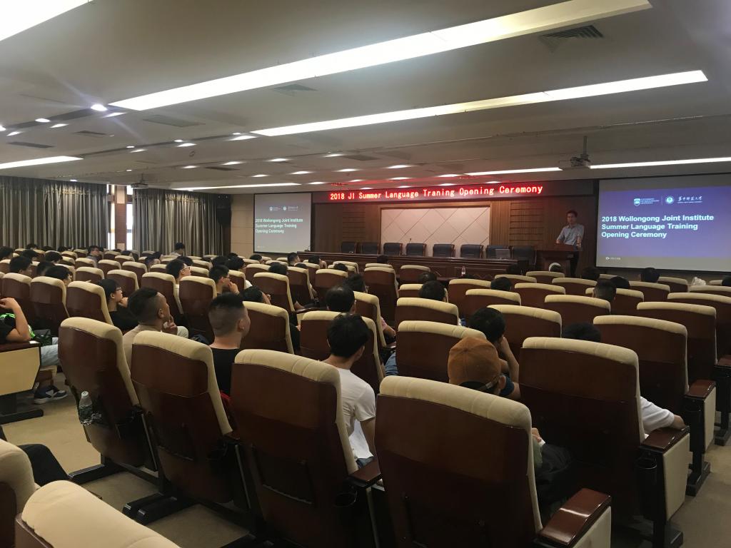 On July 2nd, JI’s 2018 summer language training opening ceremony was successfully carried out in Yifu International Conference Hall. Mr. Wu Helin, Deputy Dean of JI, Professor Luqing Wang of UOW College, and all the teachers and students relevant attended the ceremony. The ceremony was hosted by Chen Cheng, a counselor of JI.