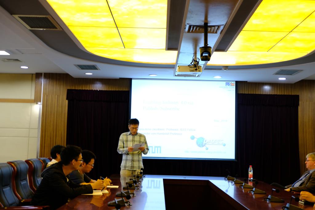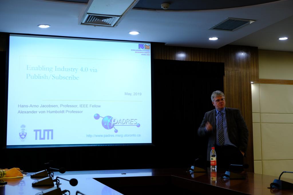 5月14日上午,加拿大多伦多大学Hans-Arno Jacobsen教授应邀在逸夫国际会议中心2楼会议室为我院计算机科学、电子与通信工程专业的硕士研究生开展主题为“Enabling Industry 4.0 via Publish/Subscribe”学术讲座。本次讲座由联合研究院余新国院长主持。