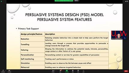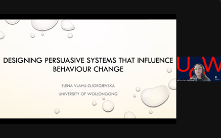 4月28号和5月12号,伍伦贡联合研究院先后举办了题为“设计影响行为改变的说服性系统”的系列学术讲座,讲座由伍伦贡大学讲师伊莲娜·乔治耶夫斯卡(Elena Vlahu-Gjorjievska)主讲,伍伦贡联合研究院孙超老师主持。
