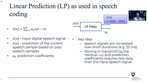 在第一场讲座中,克里斯蒂安·瑞兹教授以日常生活中的语音技术的应用为引,展开了关于语音信号处理的相关理论介绍。首先,他介绍了语音信号处理中的基本工具,离散余弦变换,短时傅里叶变换等,并使用MATLAB为大家演示了语音信号的频谱特征,加强了同学们对于语音信号的理解。随后,克里斯蒂安·瑞兹教授从人类的发声系统为例,介绍了语音信号的周期,频率等。最后,他详细阐述了语音信号处理中线性预测模型的具体算法流程。