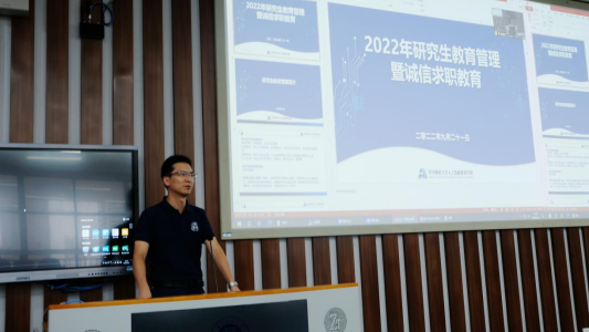 此次主题班会旨在增强同学们对校纪校规和学术规范的认识,提高职业生涯规划的可行性,树立正确的思想意识及奋斗目标,帮助毕业年级学生度过充实而有意义的研二时光。主题班会由联合研究院副院长吴和林主持。