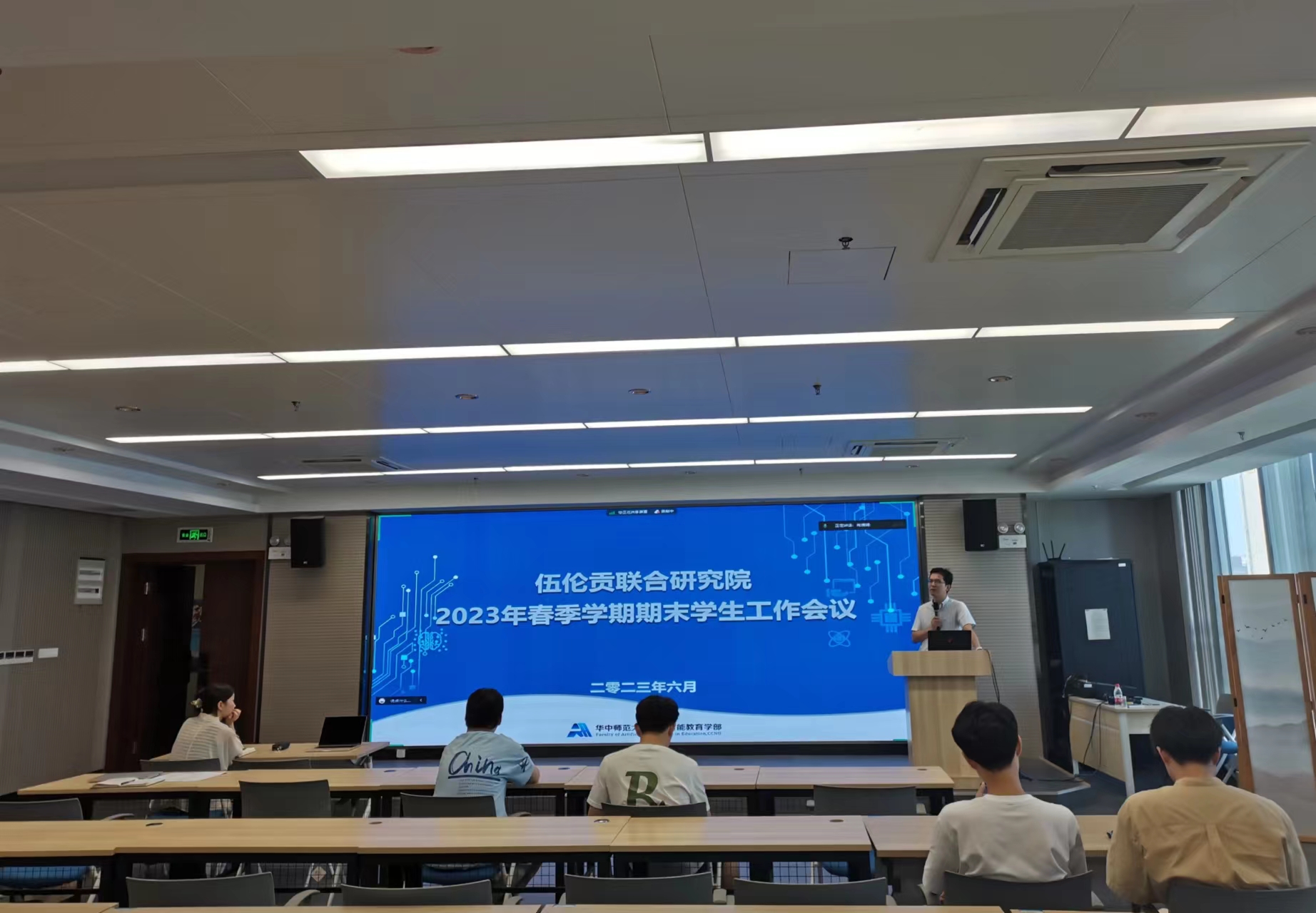(通讯员 肖婧娟)6月13日,为指导2022级学生毕业论文开题答辩,做期末和暑期离校纪律和安全教育,掌握学生本学期满意度情况,伍伦贡联合研究院2023年春季学期期末学生工作会在南湖综合楼7001室举行,联合研究院副院长吴和林、教学秘书杨洋和辅导员肖婧娟出席本次会议,2022级学生通过线下和线上相结合的方式参加了座谈会。