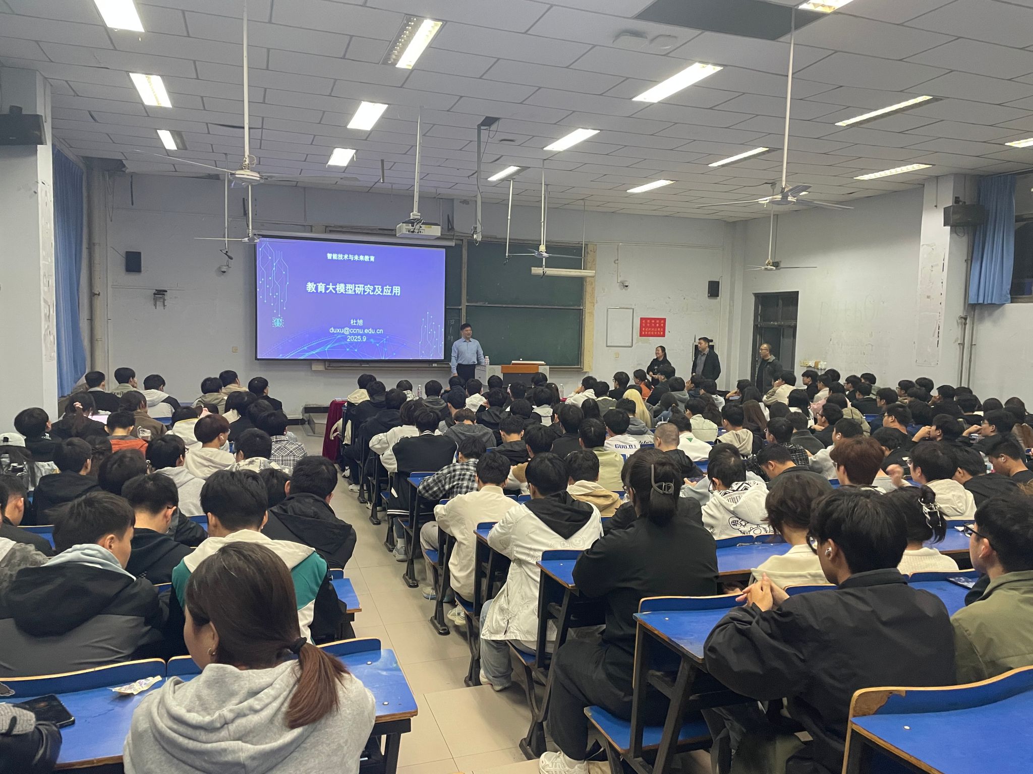 访问期间,杜旭还面向三所高校的计算机科学与技术、软件工程等专业学生,开展了“智能技术与未来教育”的系列学术讲座。结合人工智能发展趋势和前沿技术,探讨智能技术对教育模式与未来社会的影响,分享了研究院相关研究成果,激起同学们对人工智能技术研究和应用的浓厚兴趣,反响强烈。