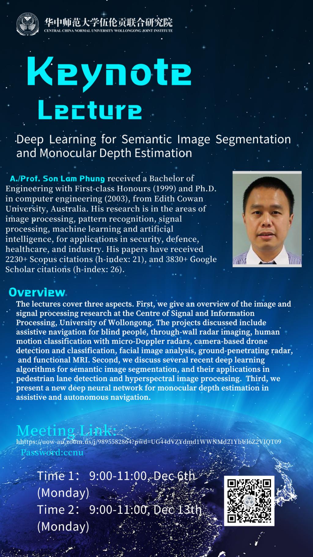 The lectures cover three aspects. First, we give an overview of the image and signal processing research at the Centre of Signal and Information Processing, University of Wollongong. The projects discussed include assistive navigation for blind people, through-wall radar imaging, human motion classification with micro-Doppler radars, camera-based drone detection and classification, facial image analysis, ground-penetrating radar, and functional MRI. Second, we discuss several recent deep learning algorithms for semantic image segmentation, and their applications in pedestrian lane detection and hyperspectral image processing. Third, we present a new deep neural network for monocular depth estimation in assistive and autonomous navigation.